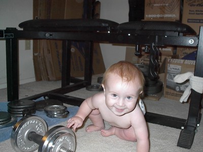 Working out with Daddy's new weights