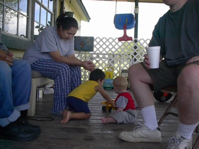 On the porch at Manuel Vasquez's place in the country