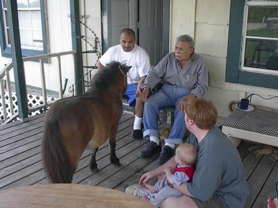 Manuel has two miniature horses, and one came on the porch to visit