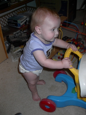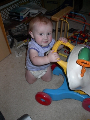 ... and I can pull myself up and walk with my toy!"