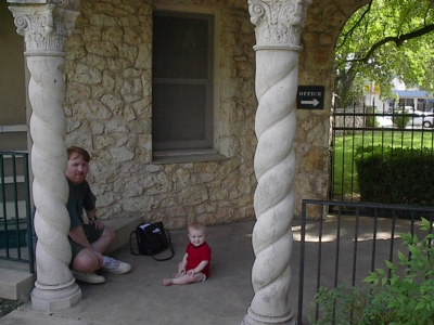 Waiting by the office where great great grandfather is buried